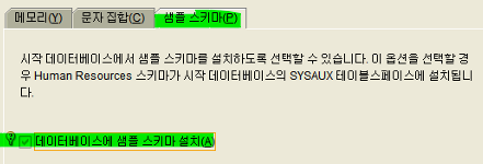 샘플 스키마(P) : HR계정을 데이터베이스에 추가 체크