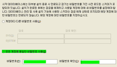 10. 데이터베이스 설치 옵션 : PC 환경에 맞게 설치 유형 선택