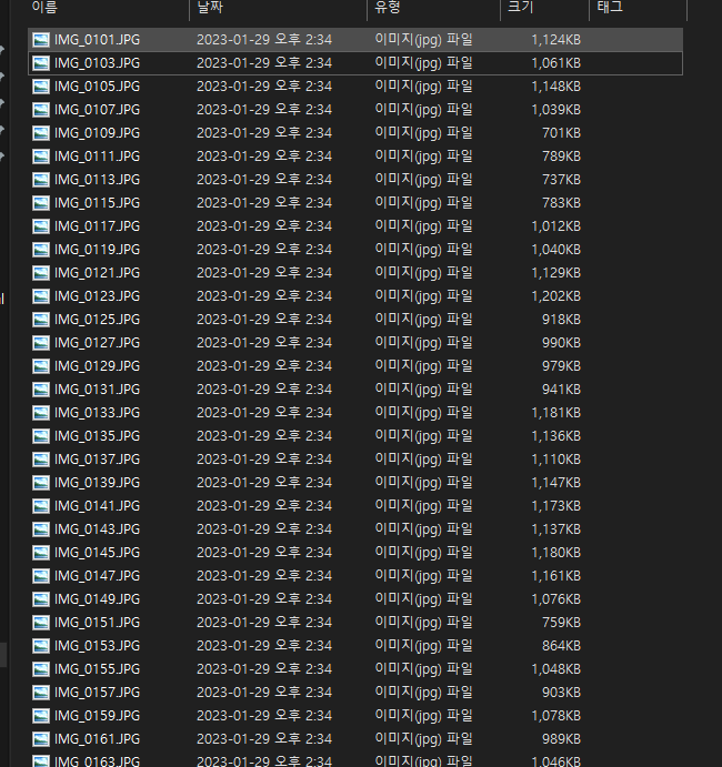 1. 지정 : 파일 리스트를 마우스'왼'클릭 후 드래그