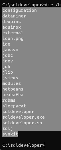 예시 : sqldeveloper 디렉토리 Tip !! : CMD 텍스트 복사 방법